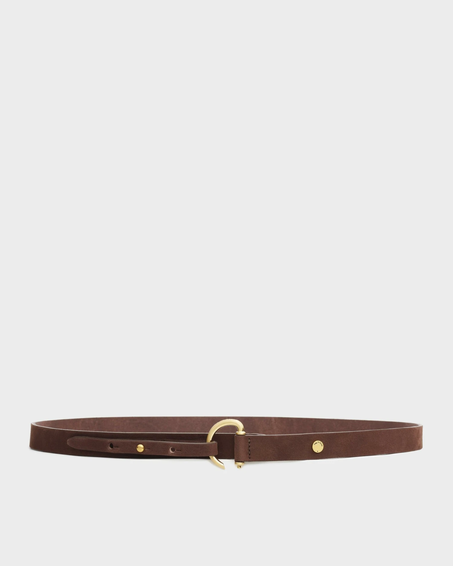 A classic hip belt crafted from Italian vegetable tanned leather with laquered edges. 20mm width, dull nickel hardware. Made in England.