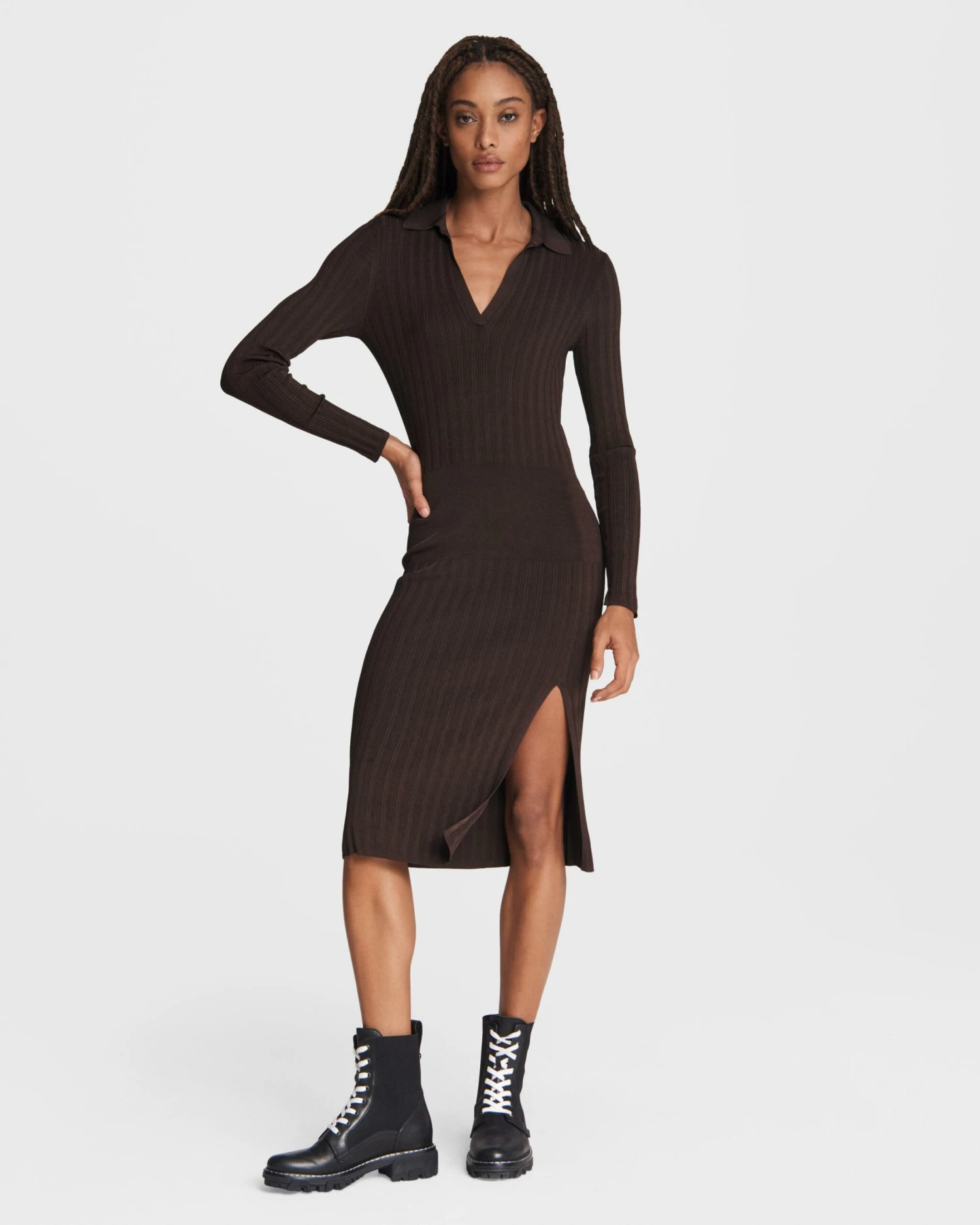 Dawson is a slim fit, polo dress cut from a subtly drape-y fabrication with a side slit for a romantic, easily put together look. Wear with sneakers or a dressed-up heel.