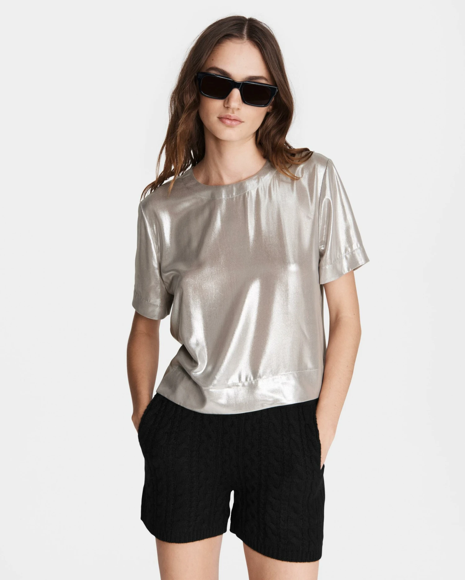 Perfect for pairing with high-waisted denim and trousers, this is a classic cropped t-shirt, featuring a back button closure.