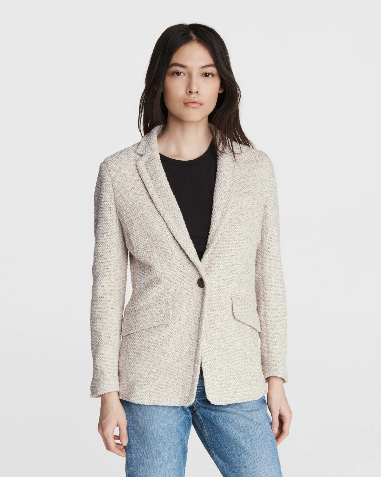 Pulling cues from traditional menswear, Margot is a classic single-breasted blazer done in a classic tweed blend. A perfect piece for a refined look.