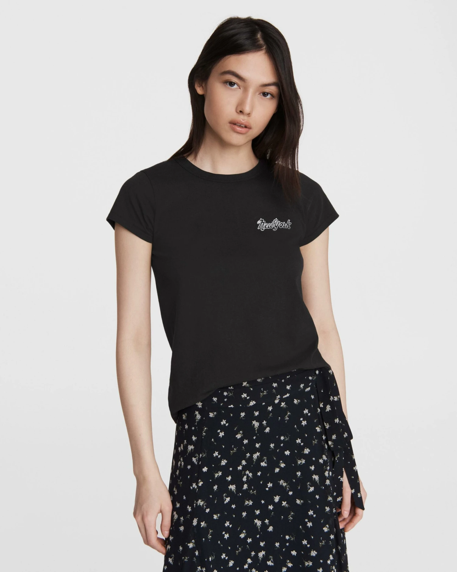 Crafted from 100% organic-in-conversion Pima cotton, this tee has a relaxed fit with incredible softness. Classic bias rib binding at the neck and signature railroad stitch details.