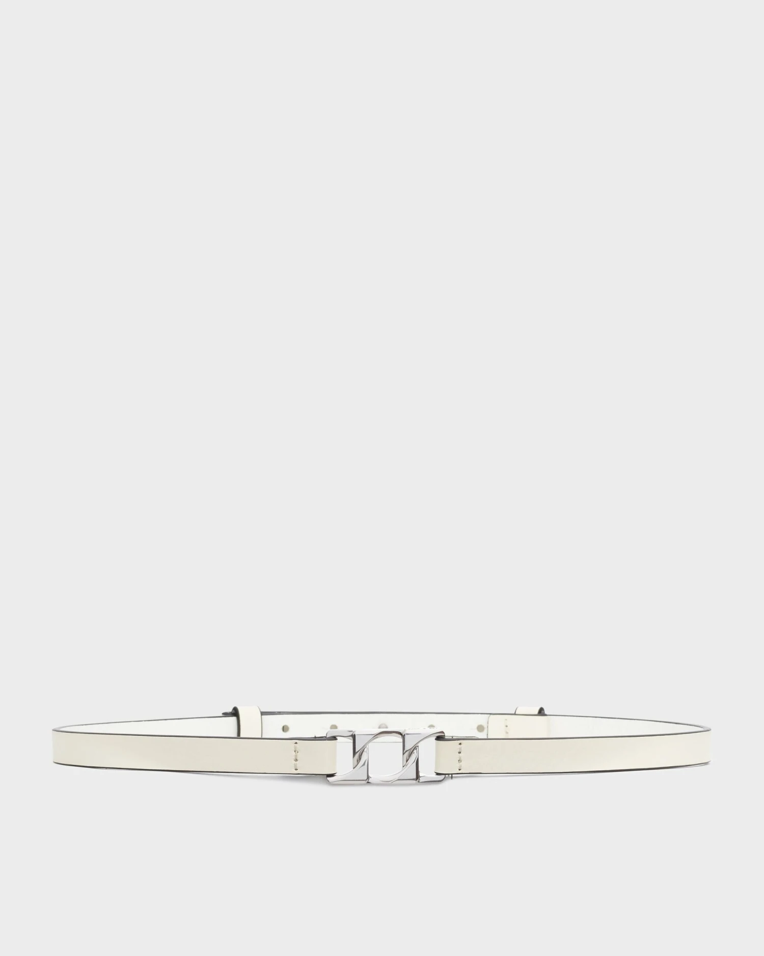15mm skinny belt made from nubuck leather. Unlined construction and finished with custom hardware in light-brushed silver detailing.