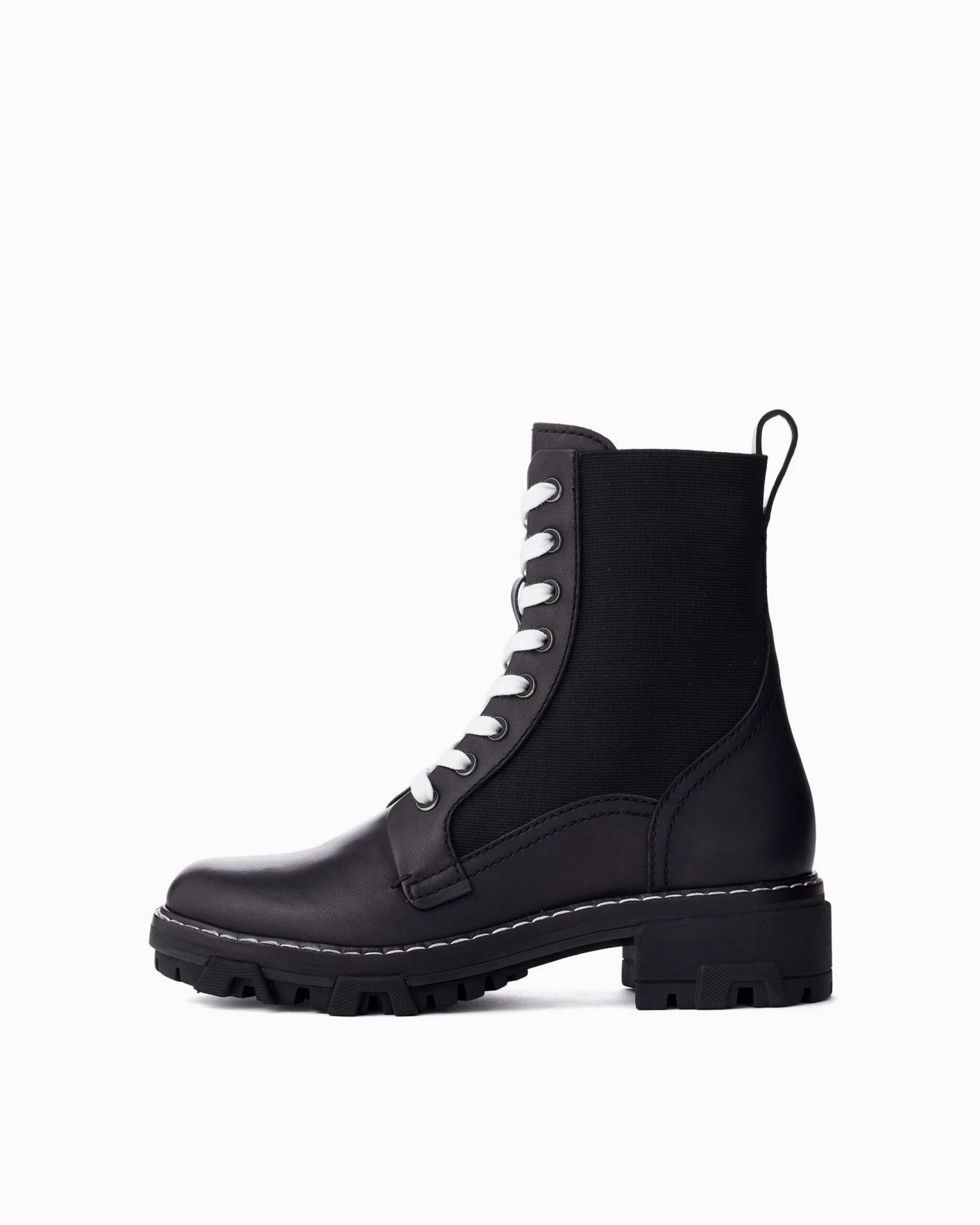 A combat-style boot with rubber outsole and contrasting laces.