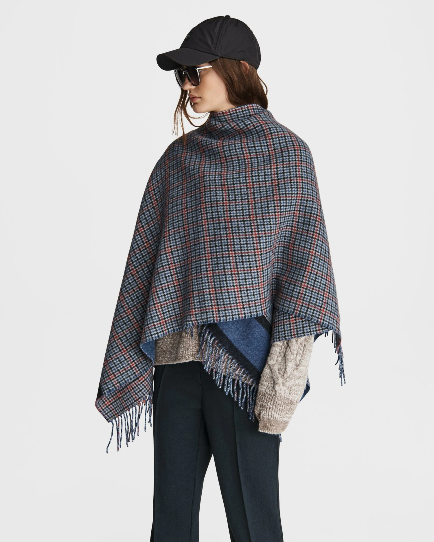Crafted in Italy from a soft wool blend, Wilshire is a timelessly classic, reversible poncho. Features a houndstooth print on one side and a solid color on the other.